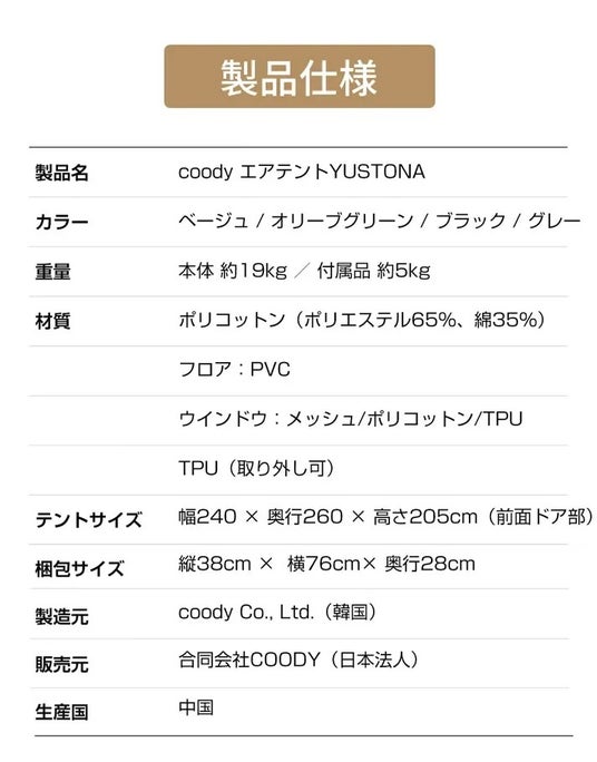 coodyエアテントYUSTONAとは