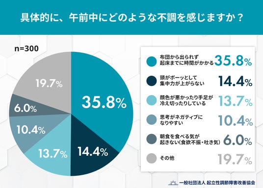 - 冬の午前中のパフォーマンス低下、89.0%が「ある」と回答。- 具体的な不調のトップは「起き上がるのに時間がかかる(35.8%)」、次いで「集中力が上がらない(14.4%)」。
