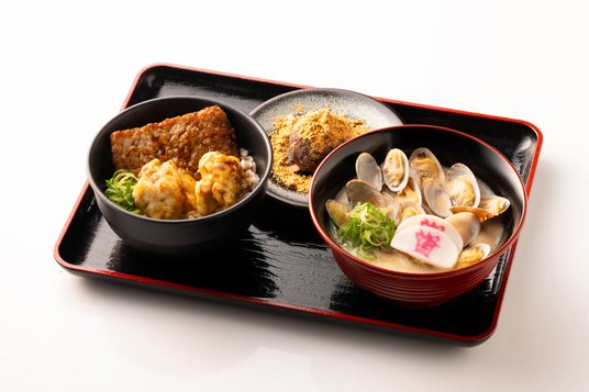 女性アナウンサー陣のアイデアを採用。「あさり」は春の旬の食材。そして、「コク旨」をテーマに「チャウダーベース」のソースと資さんの「出汁」を合わせました。お好みでセットのこしょうをかけるのもオススメです。