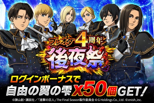 本日、2026年2月27日(金)より、ブレオダ4周年後夜祭を開催!ログインボーナスで自由の翼の雫 x50個をGET可能!