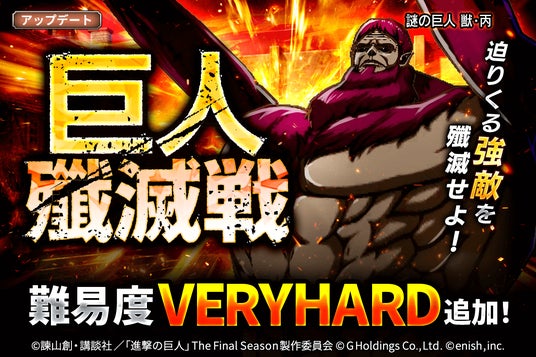 本日、2026年2月27日(金)に巨人殲滅戦に新難易度 VERY HARD を追加!迫りくる強敵を殲滅せよ!