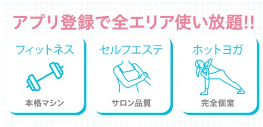 様々なご要望にお応えするため、セルフエステ・フィットネス・個室ホットヨガ・ピラティスなど、多彩なコンテンツをご用意。すべて追加料金不要で使い放題なので、目的や気分に合わせて自由にご利用いただけます。