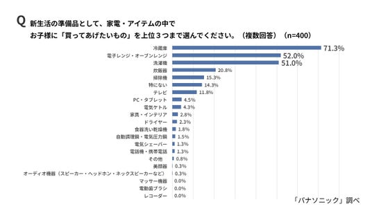 進学や就職を機に親元を離れ、初めての一人暮らしをスタートさせる人も多い春。期待に胸を膨らませる子どもと、その生活を案じる親の間には、新生活に求める「理想」に意識の違いが生じています。パナソニック株式会社は、この春、親元を離れて新生活を迎える、または始めたばかりの子世代(20歳~28歳)とその親世代(40代~60代)の男女計800名を対象に、「新生活準備に関する親子の意識の差」に関する実態調査を実施しました。