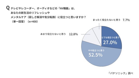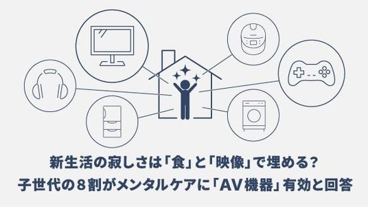 ・テレビやレコーダー、オーディオなどの「AV機器」が、新生活のメンタルケアに「役立つ」と回答した子世代は約8割と大半を占め、心の安定を支える重要ツールとして認識されている実態が明らかになった。
