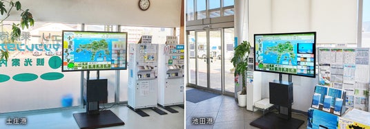 (土庄港・池田港に設置された観光デジタルサイネージ)