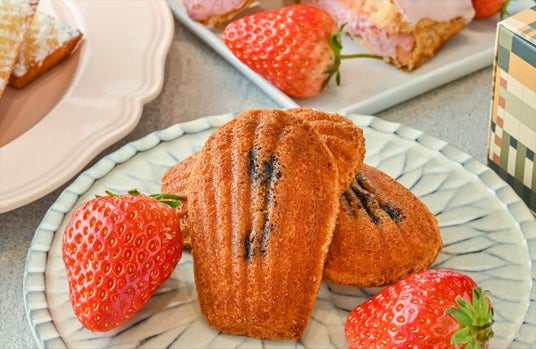 また、爽やかな酸味がアクセントの『ベリーマドレーヌ』も新発売。国産発酵バターを使った生地に、ベリー(フランボワーズ、ブルーベリー、いちごなど)のジャムを流し込み、ショップに併設しているキッチンのオーブンで焼き上げます。バターの香りとコク、ベリーの甘酸っぱさが相性抜群です。