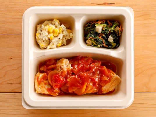 当社のお弁当容器は冷凍宅配食サービスには珍しい「パルプモールド」素材を採用しています。パルプモールドは環境問題に対して様々な分野で期待されている素材です。主な原材料はサトウキビ搾汁後の粉で、燃やしても有害な物質は発生せず、もし放置されても土壌で分解され自然に還るので、自然環境に負荷がかかりません。仮に体内に入ったとしても健康被害が少ないのが特徴です。