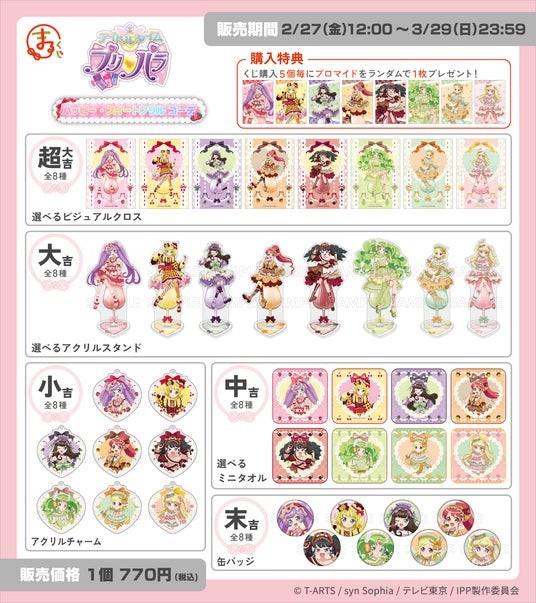 株式会社エディア(本社:東京都千代田区、代表取締役社長:賀島 義成)の子会社、株式会社ティームエンタテインメント(本社:東京都千代田区、代表取締役社長:賀島 義成 以下:ティームエンタテインメント)は、2026年2月27日(金) 12:00よりTVアニメ『アイドルタイムプリパラ』の新規オリジナルグッズを、インターネットで購入できるオンラインくじサービス『まるくじ』にて販売開始したことをお知らせいたします。