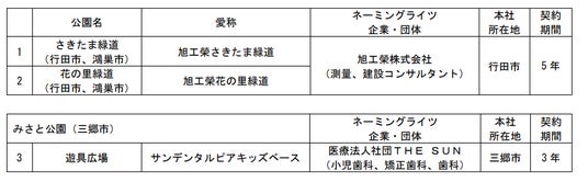 今回、追加決定した愛称は、令和8年4月1日から使用し、ネーミングライツ料は、今後、各公園の魅力アップと新たな価値の創造に活用します。各公園及び公園施設の新しい愛称を、どうぞよろしくお願いします。