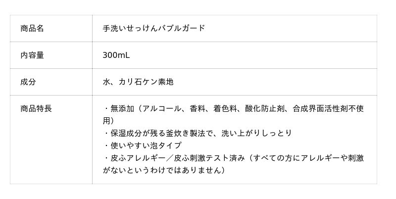 「手洗いせっけんバブルガード」商品概要