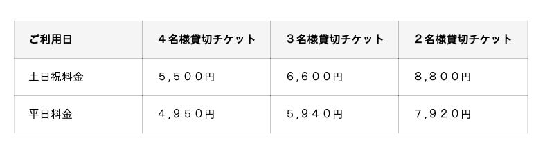 ※各チケットは、指定の人数より多い人数でのご利用はできかねます。