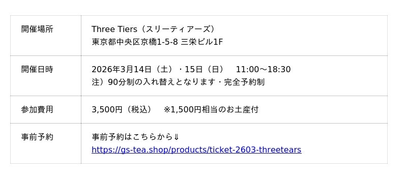 株式会社味とサイエンス(東京都中央区)が展開する英国王室にも献上した、老舗紅茶ブランド「George Steuart Tea(ジョージスチュアートティー)」は、英国菓子で高い支持を集める「Three Tiers(スリーティアーズ)」のサロンを舞台にした特別イベントを、2026年3月14日(土)・15日(日)の2日間限定で開催いたします。ティーインストラクター吉村良子がジョージスチュアートティーの豊富なフレーバーからセレクトした紅茶の”体験”に加え、ロンドンの五つ星ホテルのレシピを再現した特別な味わいのスリーティアーズのキャロットケーキが楽しめる特別なイベントです。
