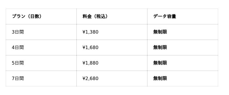 <台湾eSIM 料金プラン>(税込価格・公式オンラインストア基準)