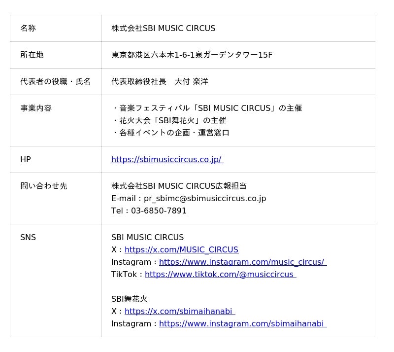 株式会社SBI MUSIC CIRCUS pr_sbimc@sbimusiccircus.co.jp 03-6850-7891