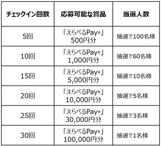 『最大100,000円分の「えらべるPay(R)」が当たる!チェックインキャンペーン』を実施いたします。