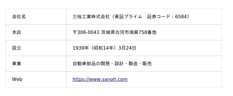 本リリースに関するお問合せは、以下までご連絡下さい。三桜工業株式会社 新事業開発本部
