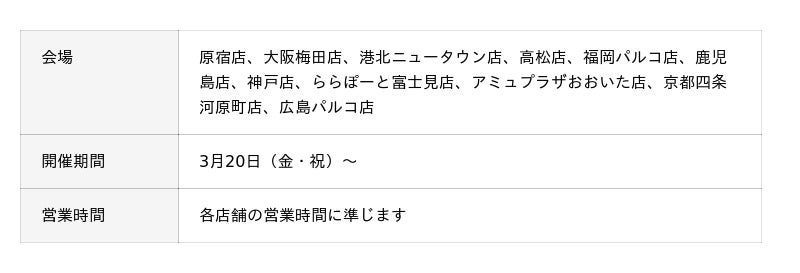 3月20日(金・祝)より、東京キャラクターストリート内と、キデイランド11店舗にて、それぞれ期間限定のポップアップショップをオープンします。ゴマちゃんのぬいぐるみやフェイスヘアバンドなど、様々なグッズをご用意してお待ちしています。<小3アシベ QQゴマちゃん POP UP SHOP>