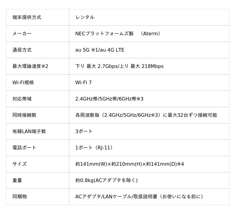 - サービス名:コミュファじたくWi-Fi by au 5G