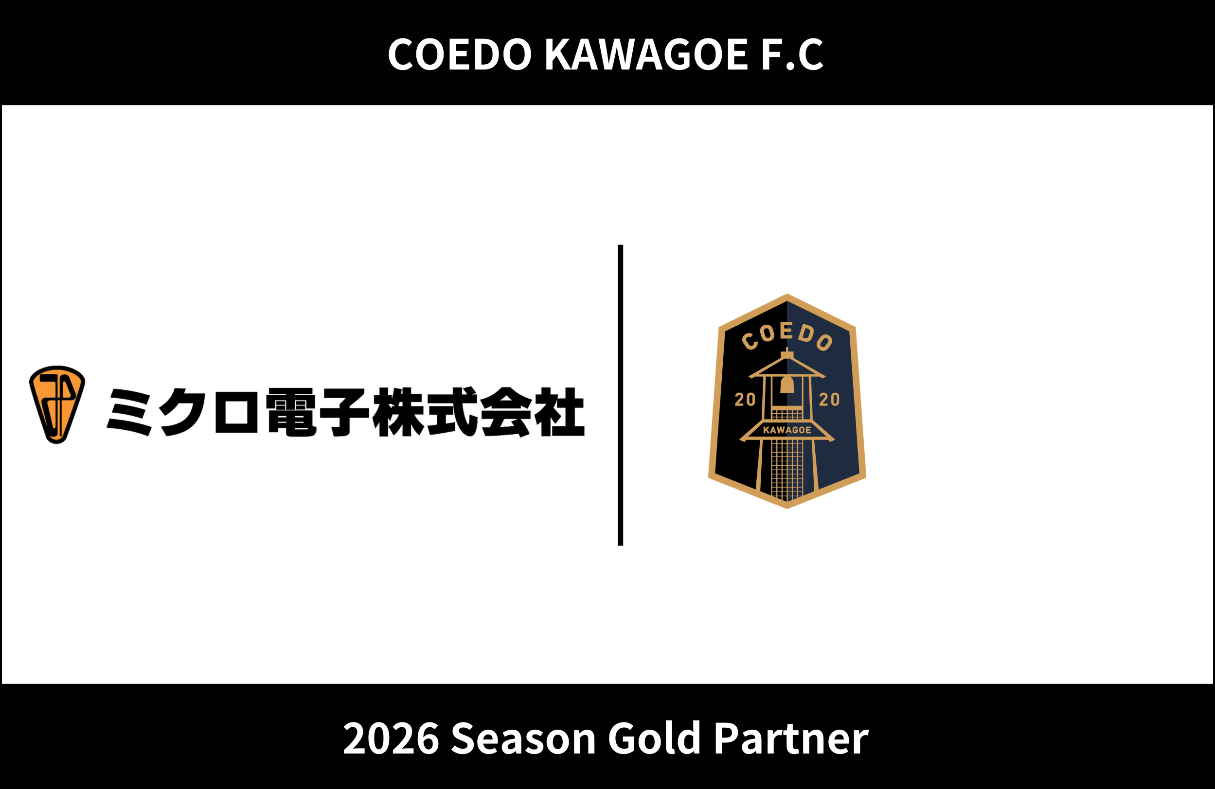 COEDO KAWAGOE F.Cを運営するCOEDO KAWAGOE F.C株式会社(埼玉県川越市、代表取締役 有田和生)は、マイクロ波発振器などの関連デバイスから装置まで、開発・設計・製造・販売を一貫して自社で行うマイクロ波応用装置の専門メーカーであるミクロ電子株式会社(埼玉県川越市、代表取締役 山中亨)と、2026シーズンのゴールドパートナー契約を締結したことを発表いたします。