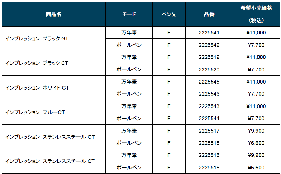 第一印象がより意識されるこれからの新生活シーズンにおいて、自分の気持ちや考えを整える時間と、それを支える筆記具の存在は、あらためて意味を持つものといえそうです。「インプレッション」は、そうした前向きな一歩に寄り添い、持つ人の自信や存在感をさりげなく引後押しします。
