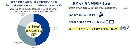 3. 約半数が「新しい環境で自信を持つために思考の整理は必要」と回答するも、実践できているの は3人に1人。整理の方法は「頭の中で考える」が多数派であることが明らかに