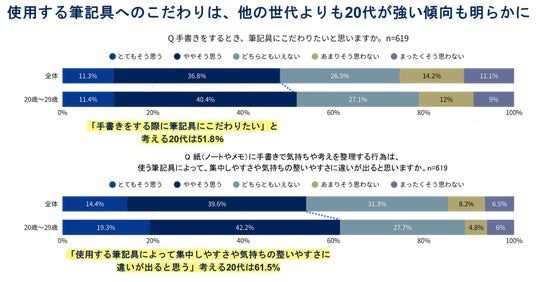 使用する筆記具へのこだわりは、他の世代よりも20代が強い傾向も明らかに