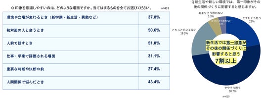 7割以上の人が新生活・新しい環境での”第一印象”がその後の関係づくりに影響すると回答