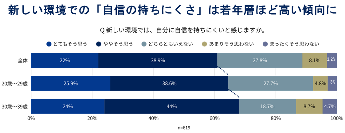 2. 新しい環境での「自信の持ちにくさ」は若年層ほど高い傾向に。