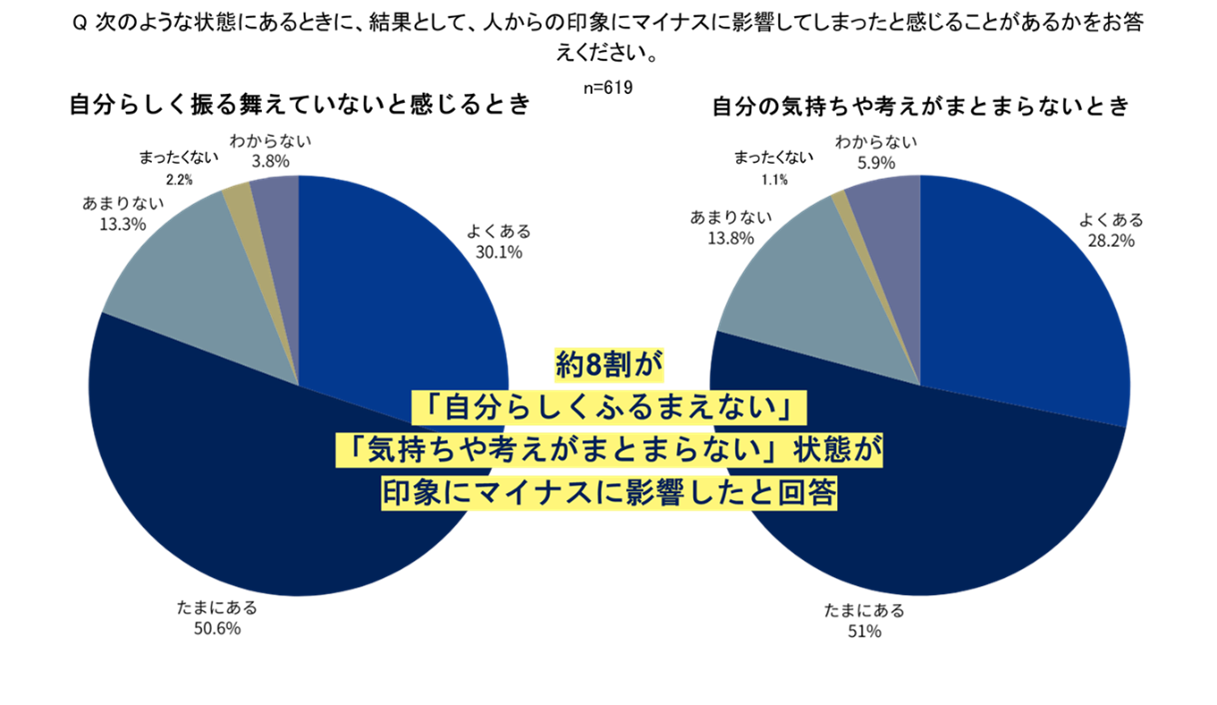 約8割が「自分らしくふるまえない」「気持ちや考えがまとまらない」状態が印象にマイナ スに影響したと回答