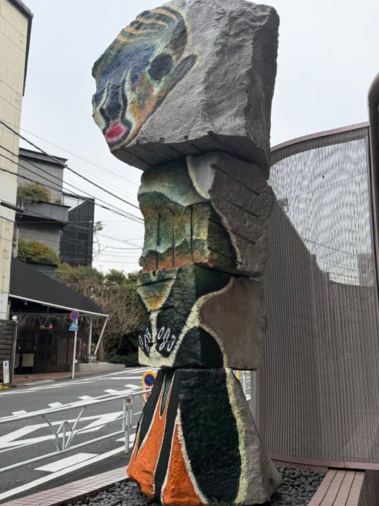 Standing approximately 2.6 meters tall, this outdoor sculpture is situated within the urban landscape of Shibuya.