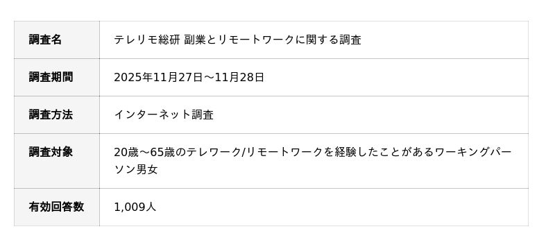 株式会社LASSIC(ラシック)(本社:東京都港区、本店: 鳥取県鳥取市、代表取締役社長: 若山幸司、以下「LASSIC」)が運営する、「場所に依存しない働き方」を推進・支援する情報を発信するWEBメディア「テレワーク・リモートワーク総合研究所(テレリモ総研)」は、リモートワーク経験者1,009名を対象に「副業とリモートワークに関する調査」を実施した。勤務形態別に副業意向を分析した結果、最も意向が高かったのは週1出社のハイブリッド勤務者(70.8%)で、最も低かったのはフルリモート勤務者(48.1%)だった。また、副業意向のある573名に副業先への出社頻度の希望を尋ねたところ、全体では「完全リモート、出社ゼロが理想」が38.9%で最多となり、特にフルリモート勤務者では62.3%に達した。