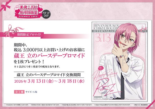 株式会社コンテンツシード(本社:東京都品川区、代表取締役:大塚 則和)は、2026年3月13日(金)より池袋P´PARCO 3Fにて劇場版「美男高校地球防衛部ETERNAL LOVE!」POP UP SHOPを開催いたします。