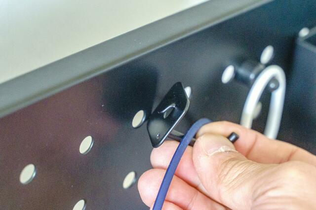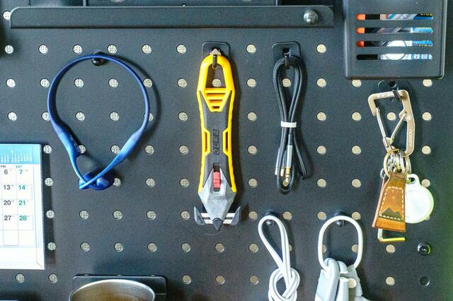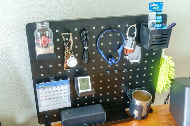 EastForceの「ペグボード デスクパネル」は、そうしたアイテムの漂流物に居場所を与えてくれます。手が届く場所にあるけど、邪魔にならないっていうところが1番の良さですね。