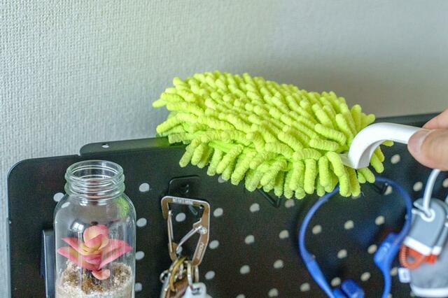 「ペグボード デスクパネル」は、見せる収納を楽しめるアイテムです。お気に入りのイヤホンやポストカード、ドライフラワーなど、日常的に使うものをあえて見せることで、デスクに自然と個性が生まれます。