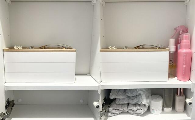 めちゃくちゃ省スペースになり、洗面所に出しっぱなしになっていたものまで収納することができました。