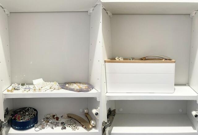 朝の準備の仕上げにアクセサリーを選ぶので、生活動線的にはここが良いのですが、この位置のまま、もう少し省スペースに収納したいなと思っていたんです。