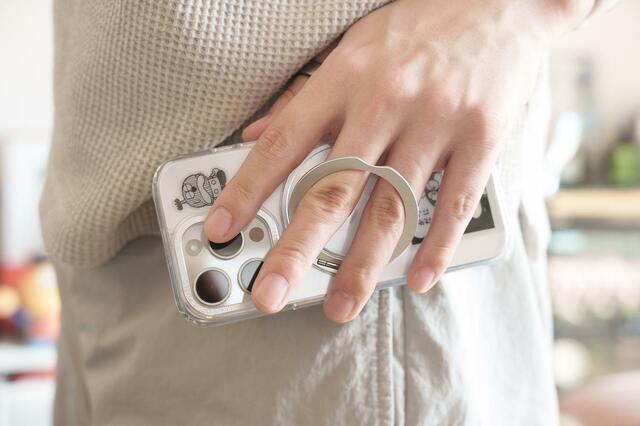 リング部分はスタンドとしてだけでなく、指を通せば落下防止にもなります。