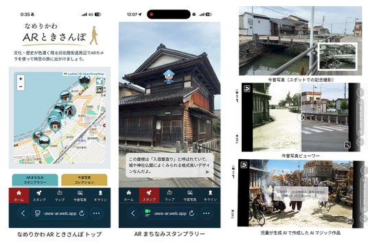 「なめりかわ ARときさんぽ」は、この課題に対し、ARで文化財の歴史や建物の構造を分かりやすく解説することで、予備知識がなくても街の魅力を深く知ることができる体験を提供。非公開建物の360°バーチャルツアーやスタンプラリー、昭和時代の写真を集める今昔写真コレクションと組み合わせることで、訪れた方が自然と旧町部エリアを歩き回りたくなる仕掛けを実現しています。