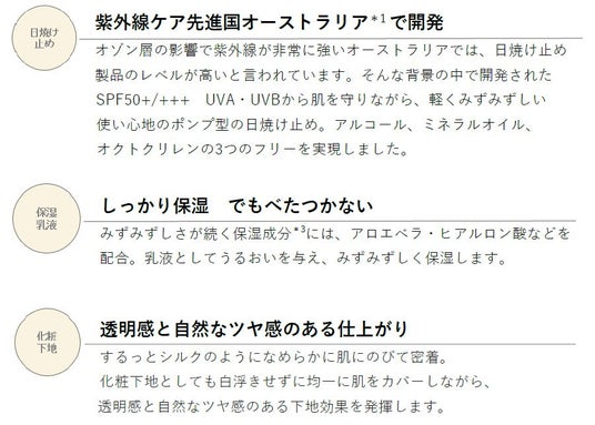 日焼け止め、乳液、化粧下地として