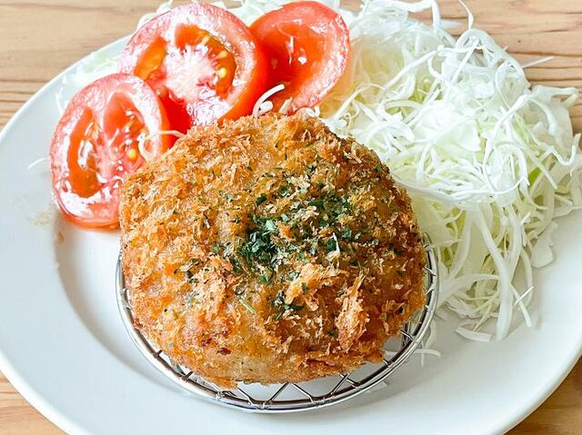 試しに、トースターで温め直したメンチカツを載せてみました。