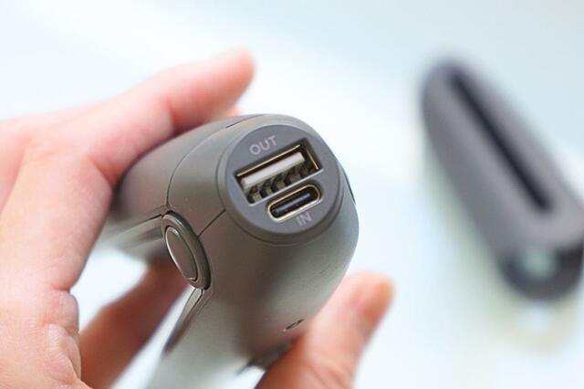 スマートフォンの充電口にケーブルを挿すだけで、ポンっと給電開始!迷うことない簡単な操作性、goodですね。
