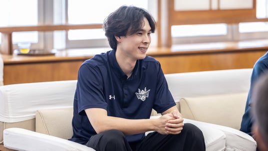 プロバスケットボール選手となって6年目になりますが、キングスに来て、この沖縄市ほど街全体でプロスポーツが盛り上がっていると感じる場所はありません。その熱量を肌で感じながらプレーできることを、とても幸せに思っています。今回贈呈したドリルやバスケットボールを通して、未来を担う子どもたちに、よりポジティブなエネルギーを届けていきたいです。これからも皆さんに元気を届けられるよう、精一杯頑張ります。引き続き応援をよろしくお願いいたします