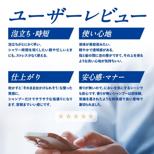 近年、SNS等において「#香害」「#スメルハラスメント」「#化学物質過敏症」といったキーワードが頻繁に聞かれるようになり、人工的な香りによる体調不良や、周囲への香りのマナーが社会的な問題となっています。かつては、どこでも吸えたタバコが分煙・禁煙へと変わっていったように、香りに対する意識やマナーが見直されています。柔軟剤から始まった「脱・香料」のトレンドは、シャンプー市場にも波及しつつあります。 エシオンは香料を抜くだけでなく、原料特有のにおい(基材臭)も極限まで抑えるため、高純度原料を厳選して使用しています。これにより、周囲へのソーシャル・マナーを大切にする方や、香りでお悩みの方、つわりなどで香りが気になる方にも安心してお使いいただけるシャンプーとなりました。先行販売時のレビューでも、「香りが無いので安心」といった切実なお喜びの声をいただいております。