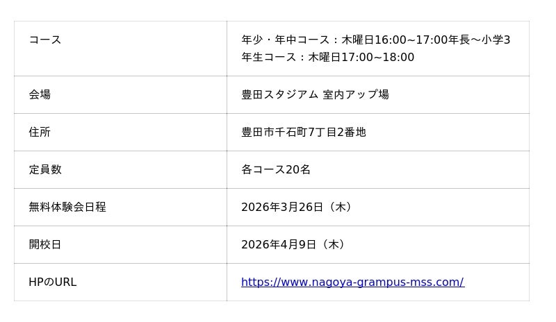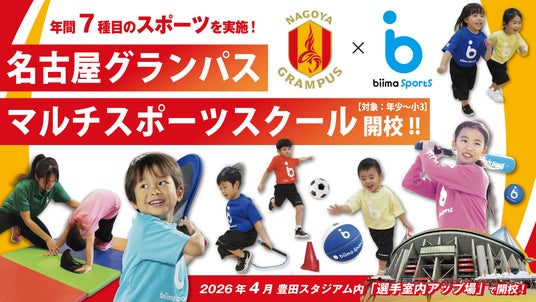 株式会社biima(東京・渋谷区/代表取締役:田村 恵彦、以下「biima」)は、愛知県名古屋市をホームタウンとするJ1リーグの「名古屋グランパス」とパートナーシップを締結し、「名古屋グランパスマルチスポーツスクール」を2026年4月に開校いたします。名古屋グランパスがミッションとして掲げる「日常がスポーツでもっと幸せあふれる名古屋・愛知を夢見て」を実現すべく、総合スポーツを通じて、一人でも多くのこどもたちにasobiとmanabiの機会を提供してまいります。