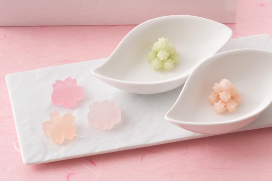 塩漬け桜の花びらを繊細な手作業で細かくして蜜がけし、軸を煮出して香りを移す製法により、一粒ごとに桜本来の味わいを閉じこめました。ほのかな塩気が砂糖の上品な甘みと調和した春薫る金平糖です。麗らかな桜色、希少な「御衣黄桜(ぎょいこうざくら)」を思わせる萌黄色。華やかな味わいと色合いをお楽しみくださいませ。