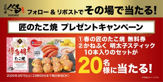 2026年3月1日(日)より7日間、くくる公式X(@kukuru_takoyaki)にてインスタントウィンキャンペーンを実施いたします。