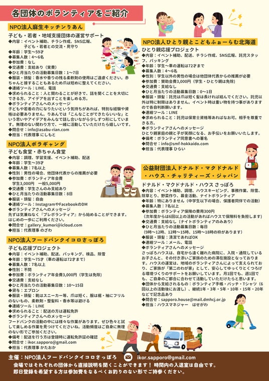 2026年3月7日(土)「子育て世帯を応援する札幌市内の5団体による合同ボランティア説明会(第一回)」を開催します!