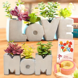 フェイクグリーン多肉ポットLOVE/MOM“文字そのものを贈る”新しい発想の母の日ギフト。
