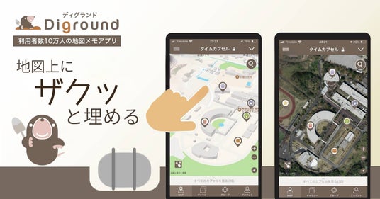 Diground(ディグランド)は、地図上を長押しするだけで、簡単に写真やコメントをタイムカプセルとして埋めることのできるサービス(iOS/Android/WEB 対応)です。