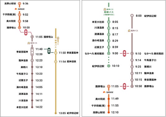 龍神自動車株式会社(本社:和歌山県田辺市、代表取締役:小川豊介、以下「龍神バス」)と南海りんかんバス株式会社は、高野山と熊野三山(本宮)を結ぶ「聖地巡礼バス」を、4月2日(木)から11月30日(月)まで運行いたします(※火、水曜日運休)。